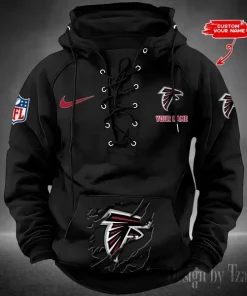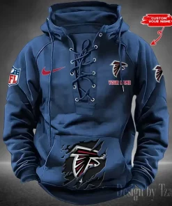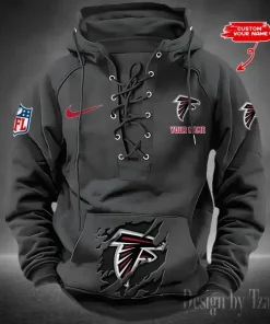 Atlanta Falcons Lace-Up Cross V-Neck Drawstring Hoodie