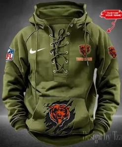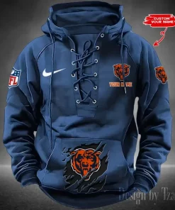 Sku: Chicago Bears Lace-Up Cross V-Neck Drawstring Hoodie