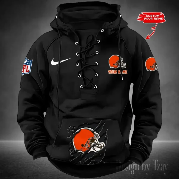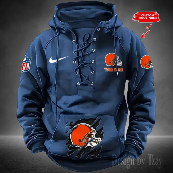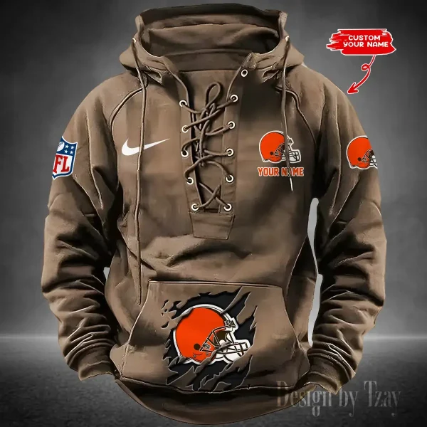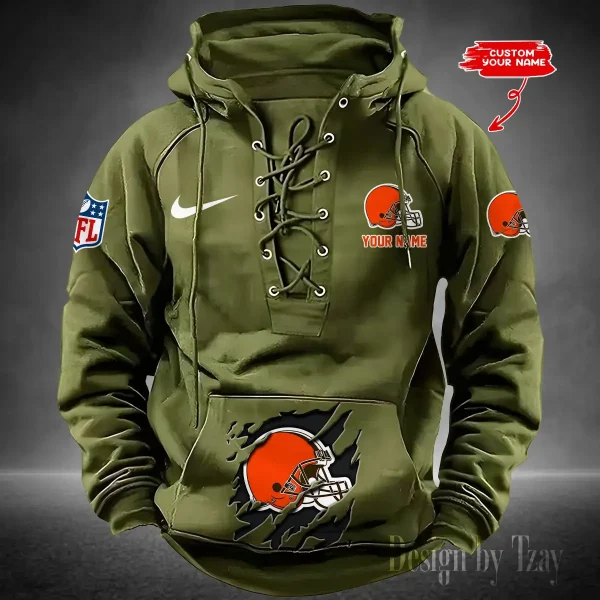 Cleveland Browns Lace-Up Cross V-Neck Drawstring Hoodie