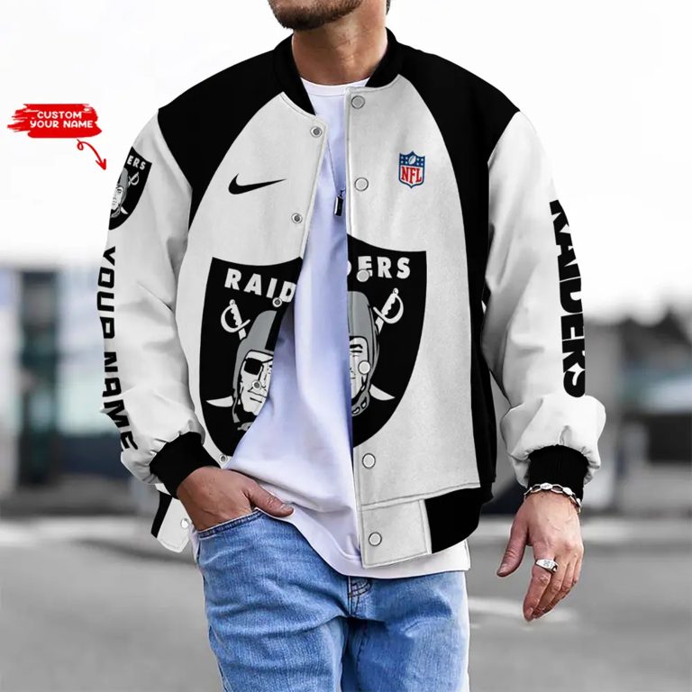 Customize Your Name With Las Vegas Raiders Button Down Baseball Varsity Bomber Jacket