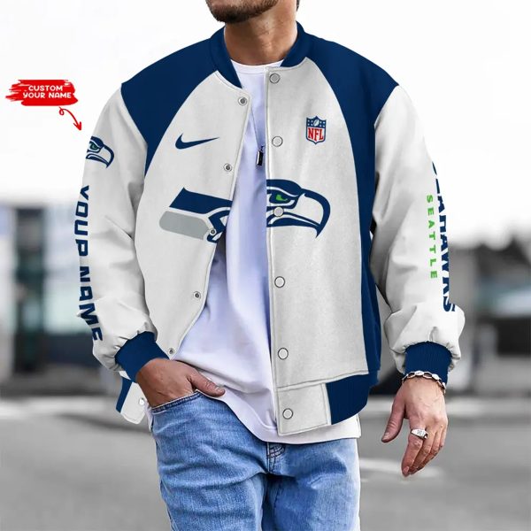 Customize Your Name With Seattle Seahawks Button Down Baseball Varsity Bomber Jacket