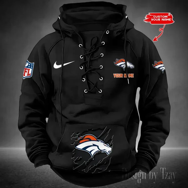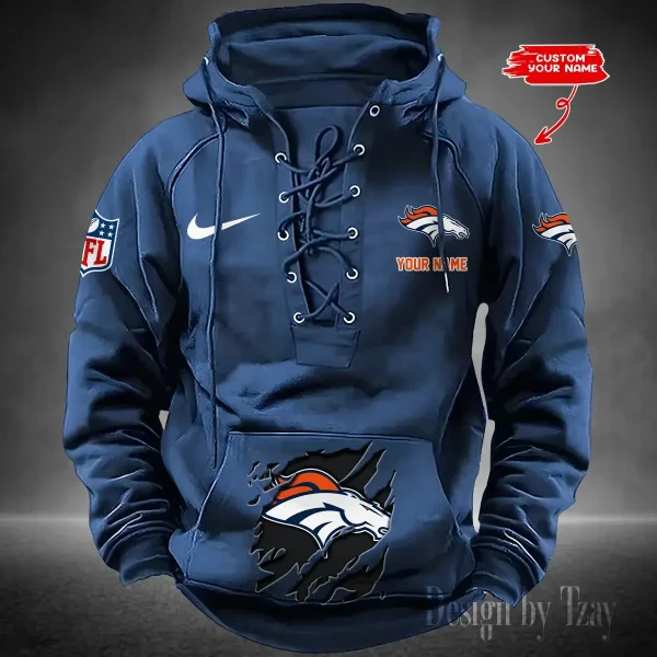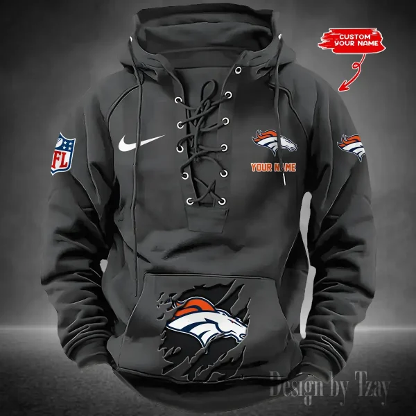 Denver Broncos Lace-Up Cross V-Neck Drawstring Hoodie
