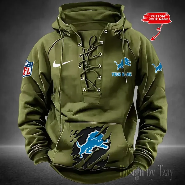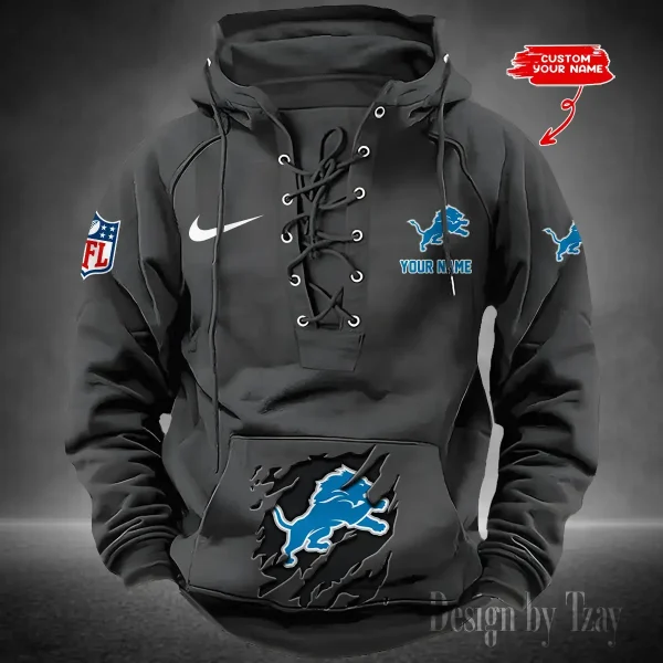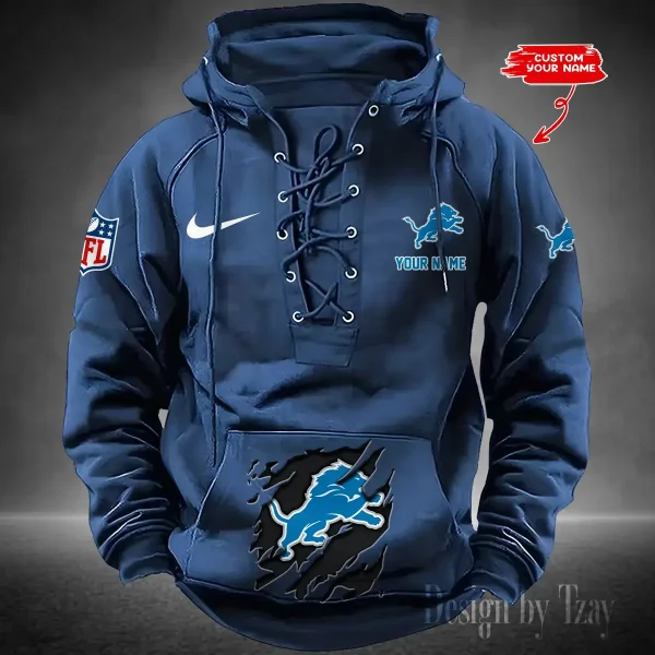 Detroit Lions Lace-Up Cross V-Neck Drawstring Hoodie Men’s Hooded Lace-up Hoodies contains a drawstring rim that offers adjustable coverage. Customize your fit to be loose during...