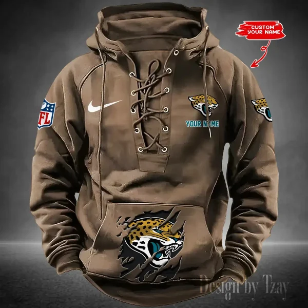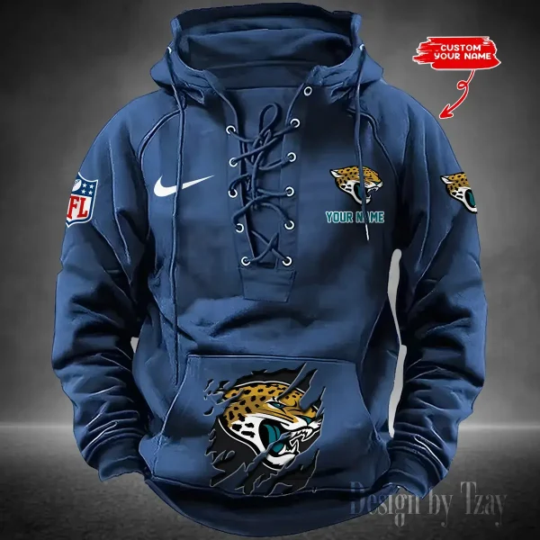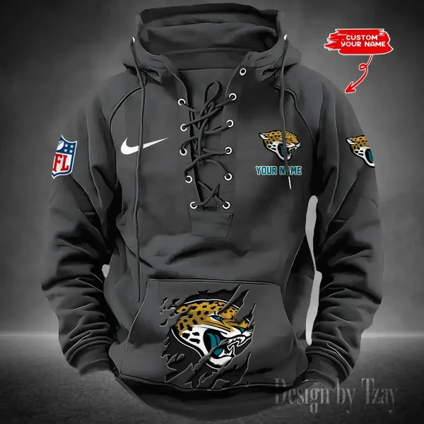 Jacksonville Jaguars Lace-Up Cross V-Neck Drawstring Hoodie Men’s Hooded Lace-up Hoodies contains a drawstring rim that offers adjustable coverage. Customize your fit to be loose...