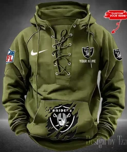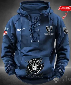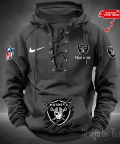 Las Vegas Raiders Lace-Up Cross V-Neck Drawstring Hoodie