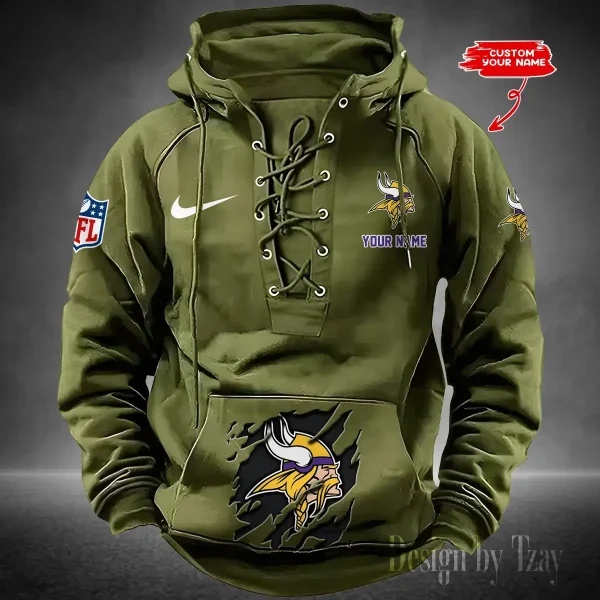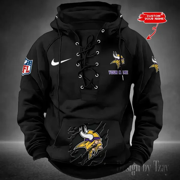 Minnesota Vikings Lace-Up Cross V-Neck Drawstring Hoodie Men’s Hooded Lace-up Hoodies contains a drawstring rim that offers adjustable coverage. Customize your fit to be loose du...