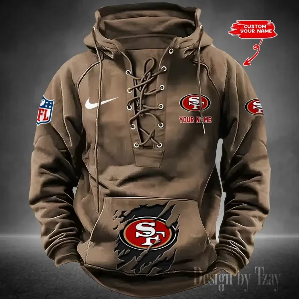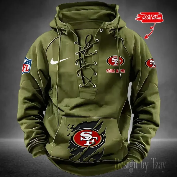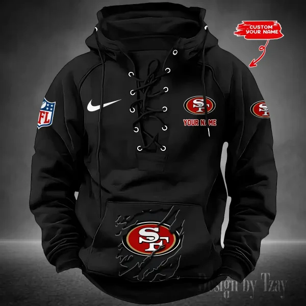 Hi there! You are looking at our NFL jackets. These styles are unique, made with love, and they are perfect accessories for your outfit. The team logo on the jackets makes them perfect items for any NFL fan. San Francisco 49ers Lace-Up Cross V-Neck Drawstring Hoodie- Men’s Hooded Lace-up Hoodies contains a drawstring rim that offers adjustable coverage. Customize your fit to be loose during relaxation or fitted during play.