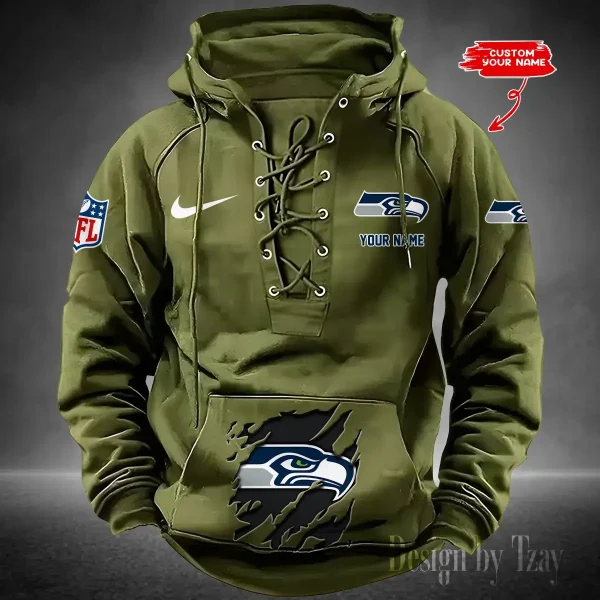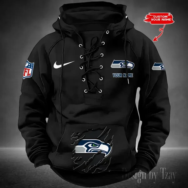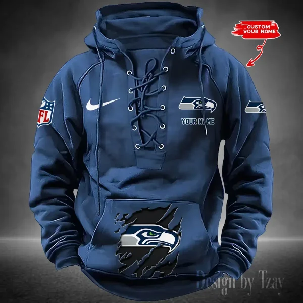 Hi there! You are looking at our NFL jackets. These styles are unique, made with love, and they are perfect accessories for your outfit. The team logo on the jackets makes them perfect items for any NFL fan. Seattle Seahawks Lace-Up Cross V-Neck Drawstring Hoodie- Men’s Hooded Lace-up Hoodies contains a drawstring rim that offers adjustable coverage. Customize your fit to be loose during relaxation or fitted during play.