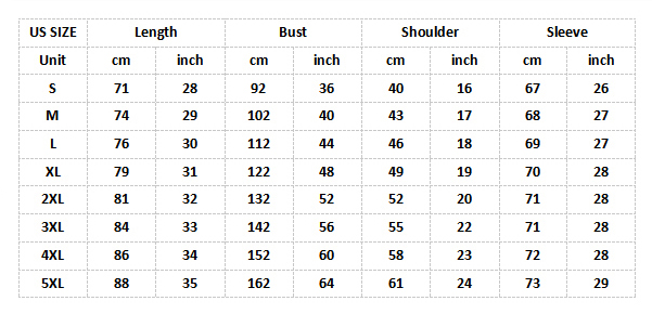 L, M, S, XL, 2XL, 3XL, 4XL, 5XL